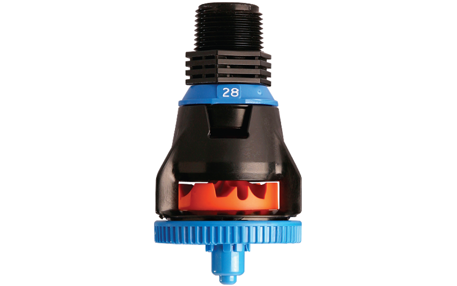 The Rotator® features the greatest throw distance available on drop tubes, producing a wider pattern resulting in a lower application rate, reduced runoff and longer soak time.